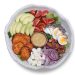 Miks gjethesh, quinoa, avocado, karrotë, lakër e kuqe, qepë turshi, falafel, miks farash (luledielli, chia, susami), dressing majosh I shtëpisë